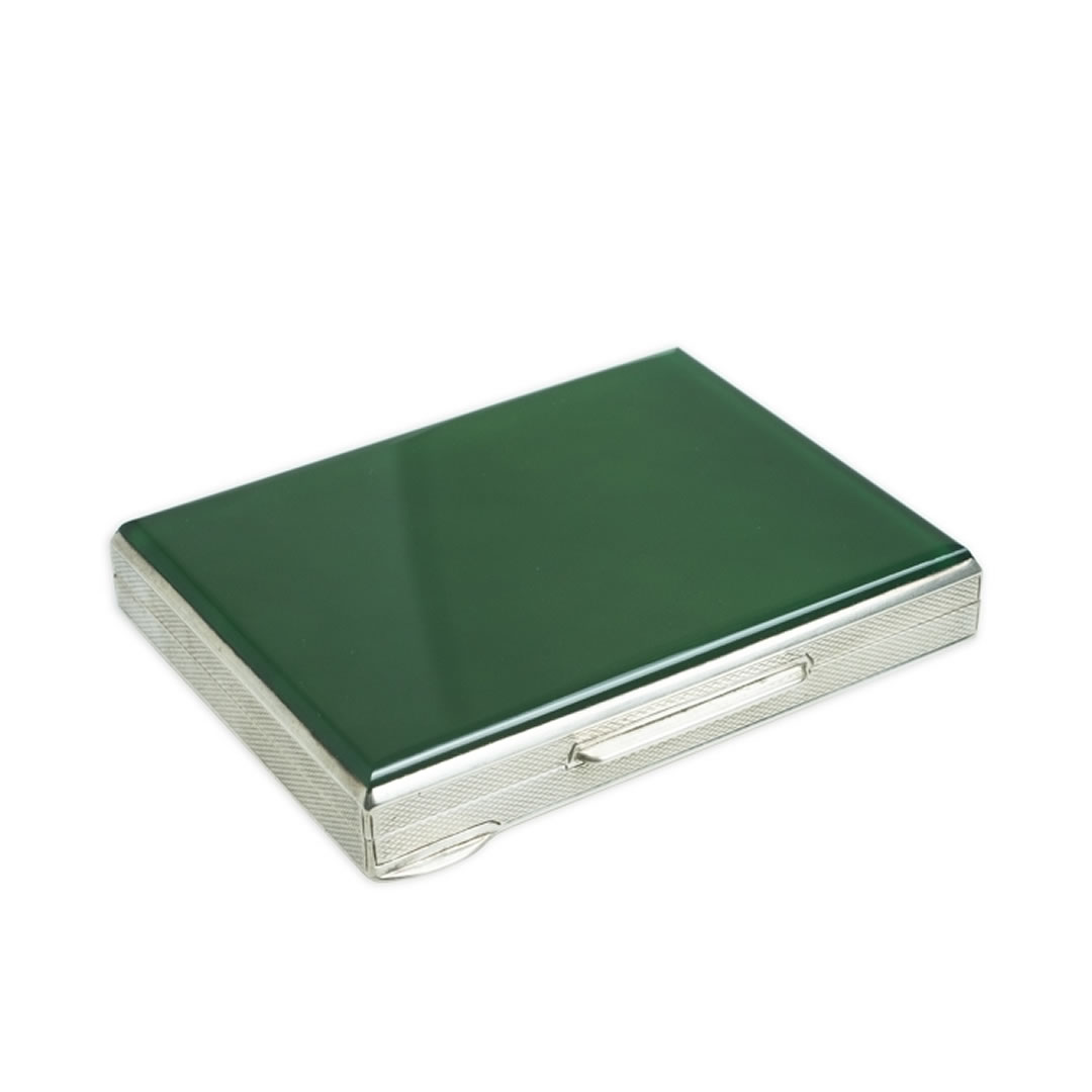 Das satte Grün des leicht durchscheinenden Chrysopras harmoniert perfekt mit dem 935-Silber und lässt diese Tabatiere besonders luxuriös wirken. Ein Stück, das auch Sammler verführt.
